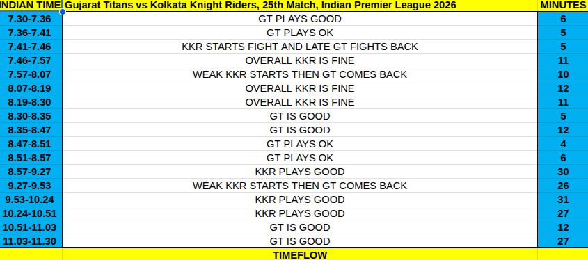 The clash between Gujarat Titans and Kolkata Knight Riders is expected to be a momentum-driven encounter based on time-flow patterns.